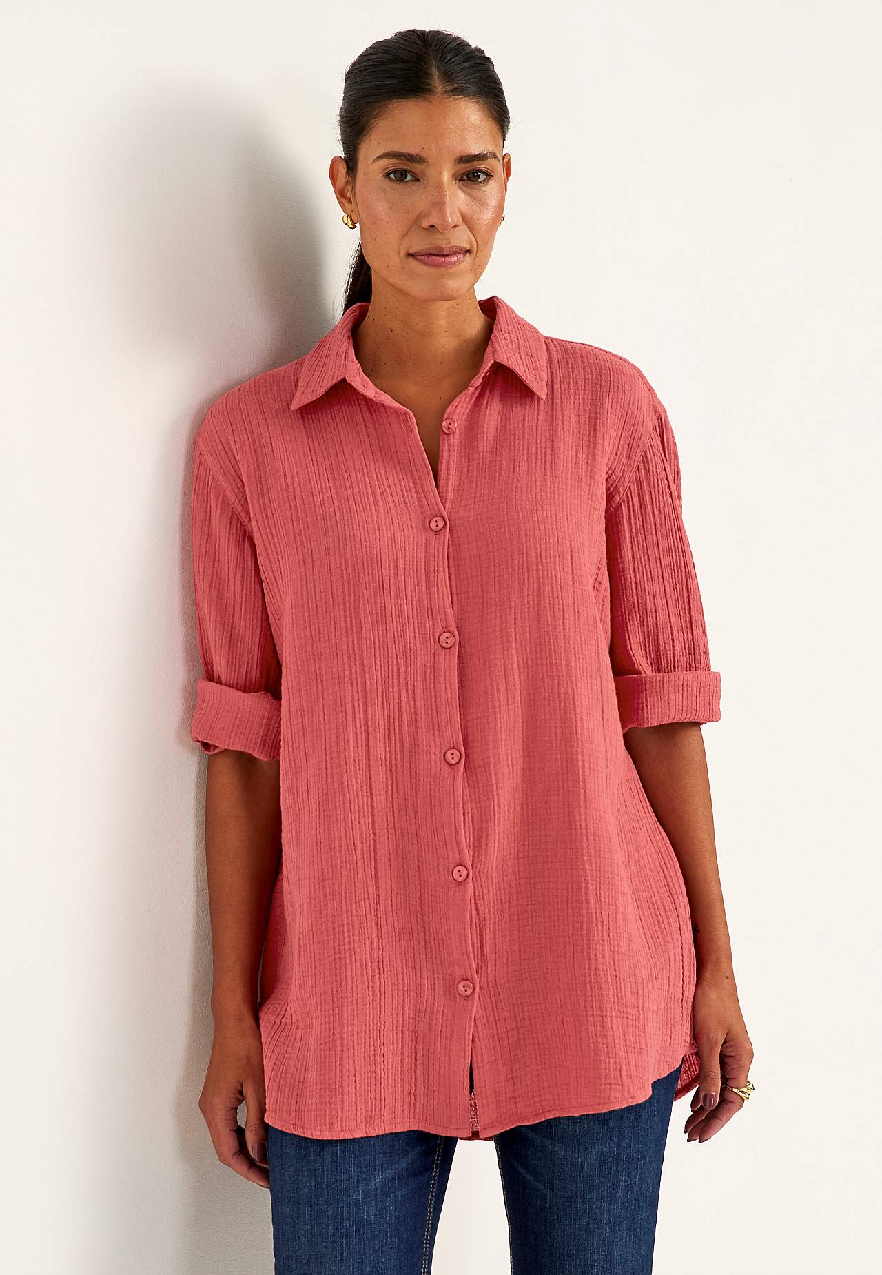 Mõnusast ja õhulisest puuvillasest, naturaalse struktuuriga kangast särk. Krae ja nööpidega mudel. Avar tegumood. Klassikaline krae. Pikendatud õlaga. Nööbiliist. Seljal passe ja volt. Üleskeeratavatel laiadel kolmveerandpikkuses varrukatel nööp ja liist. Kaarjas alläär on taga veidi pikem. Pikkus õlast vastavalt suurusele ... Loe rohkem