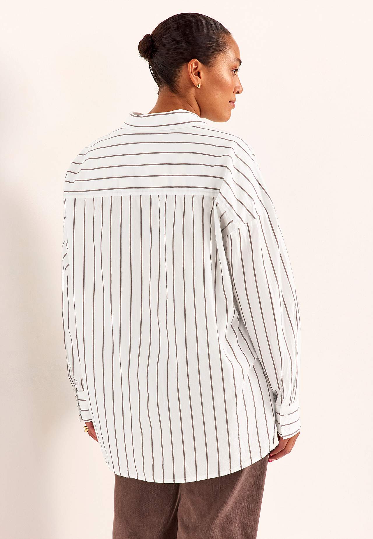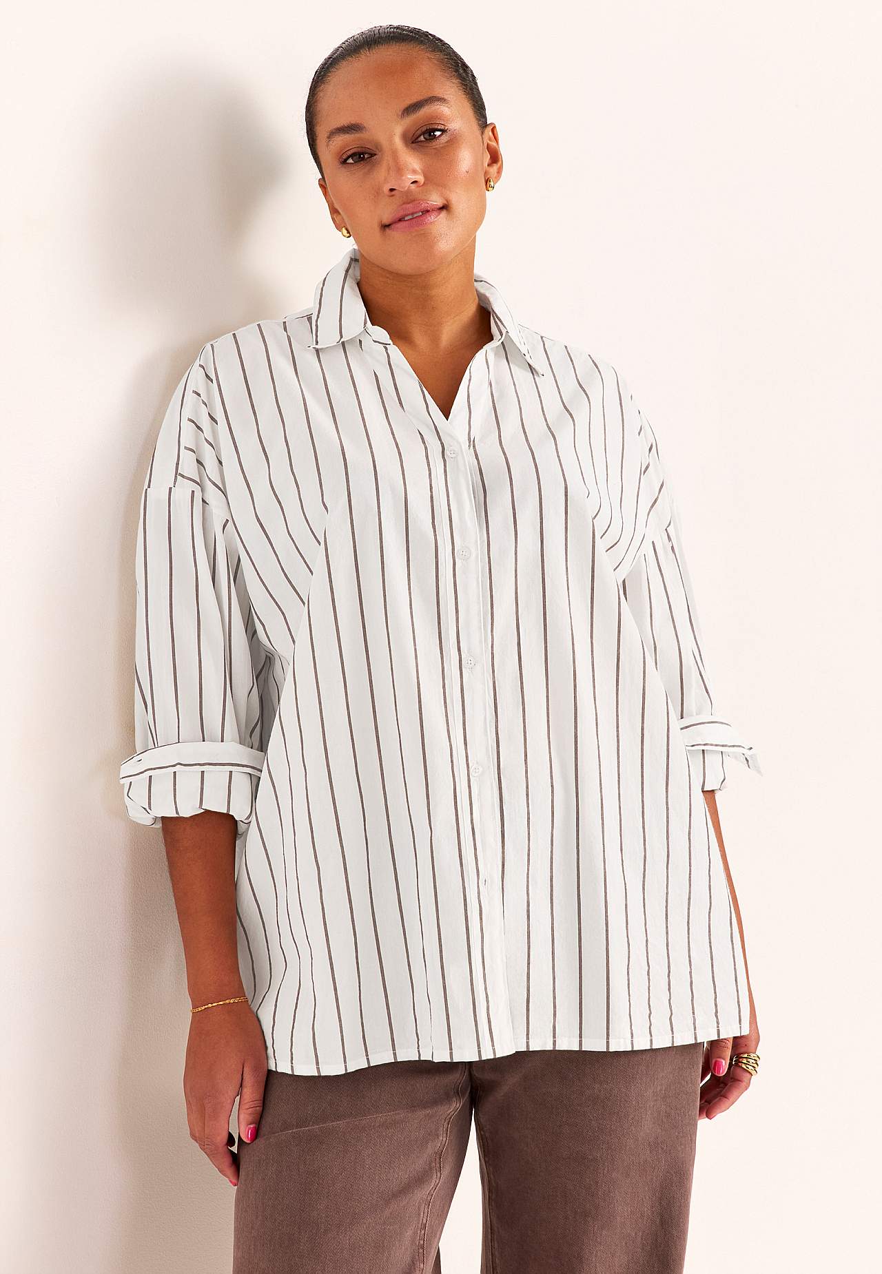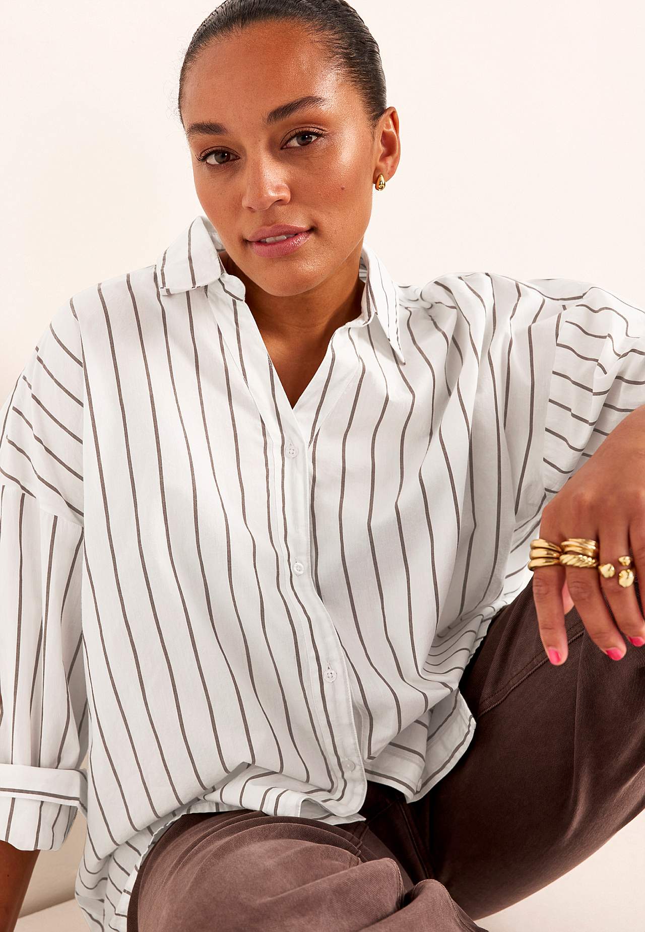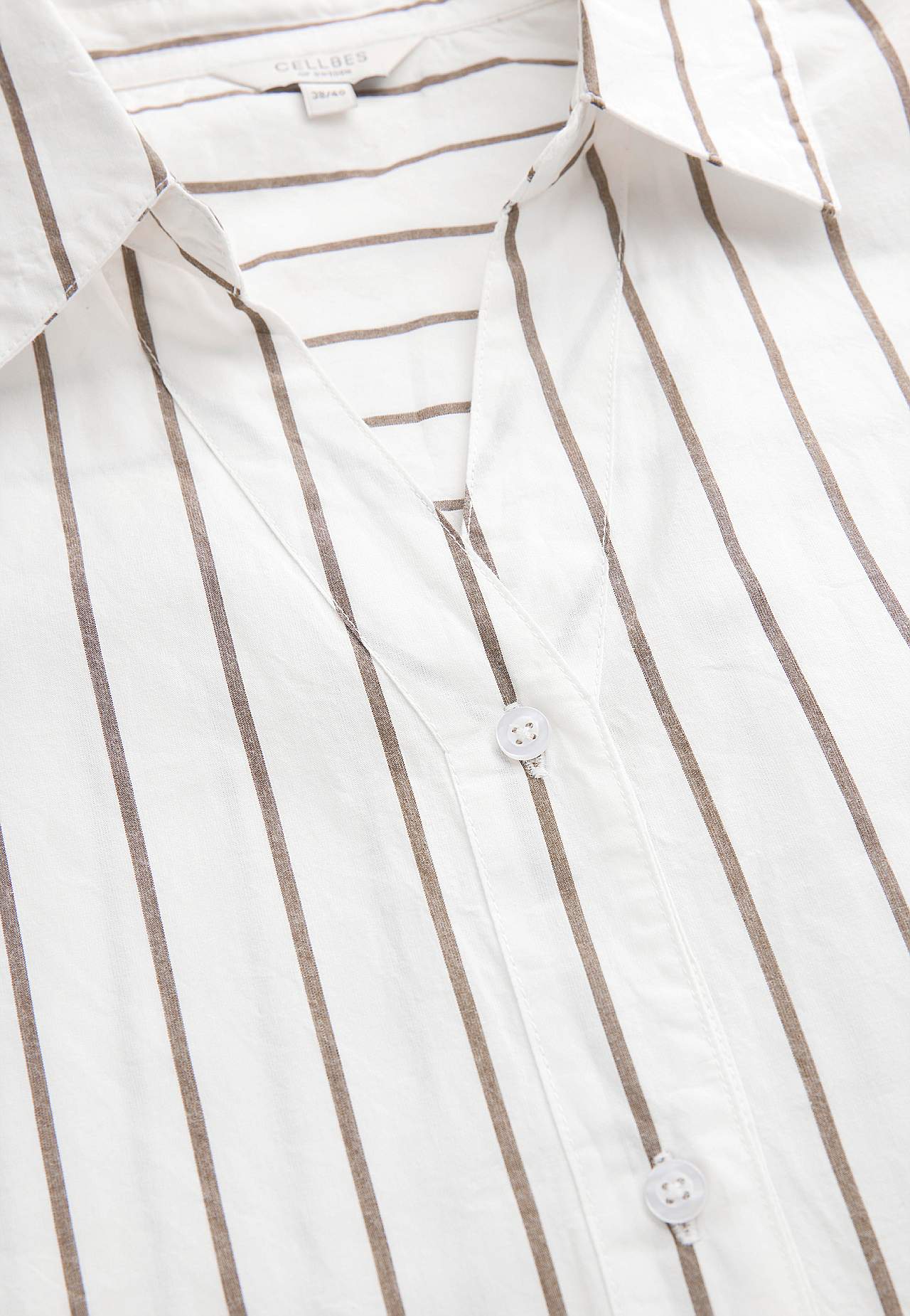 Klassikalise kraega triibuline pikem särk. Pehmest karge struktuuriga materjalist. Avarama vabaaja lõikega. Klassikaline krae ja V-kaelus. Pikendatud õlaosa. Pikk nööbiliist. Taga passe. Pikkade varrukate otstes mansett ja nööp. Kaarjas alläär, tagant veidi pikem. Pikkus õlast vatsavalt suurusele u 77-84 cm.