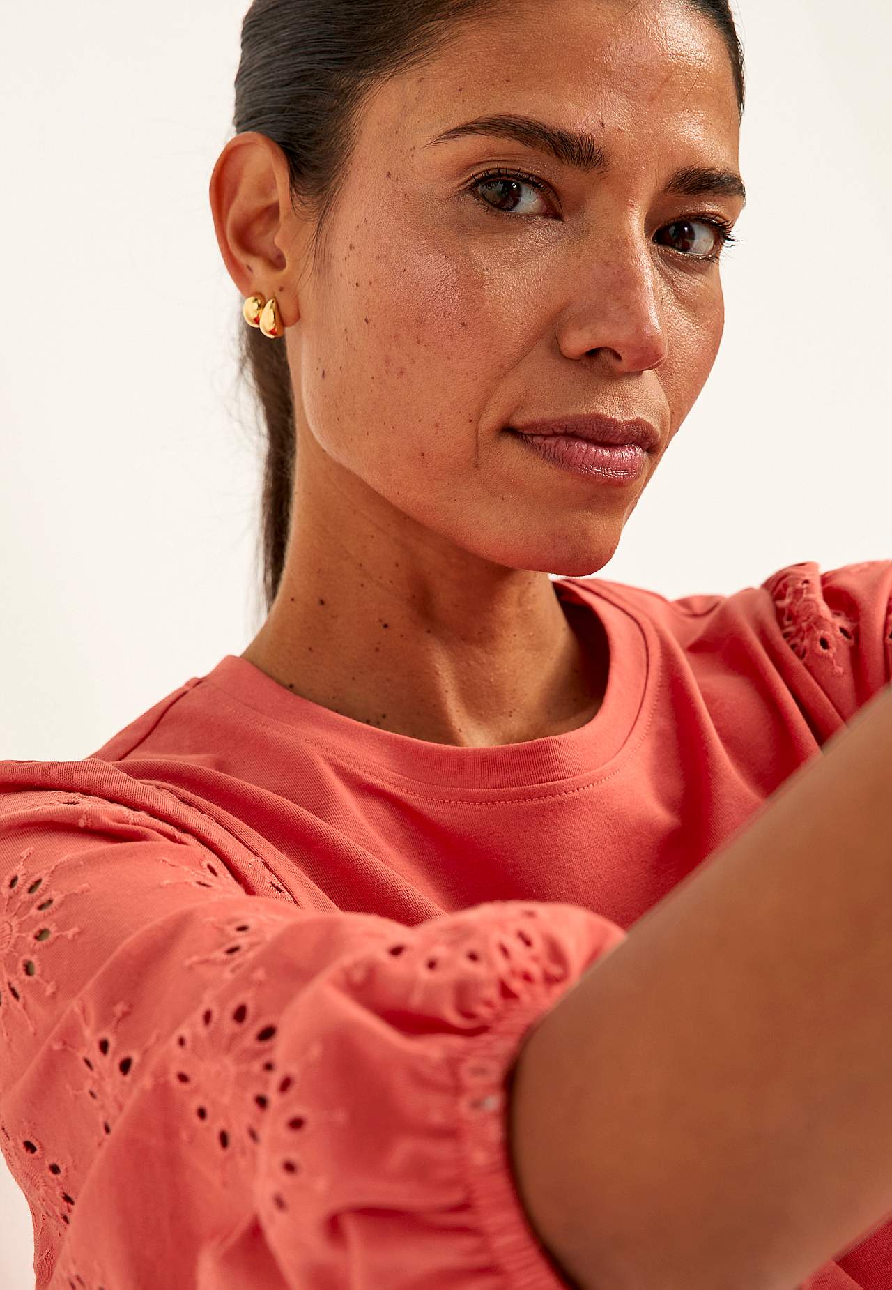 Veidi paksemast ja tugevamast puuvillasegusest kangast tuunika. Sirge tegumood. Efektsed krooked õlgadel. Ümar kaelus. Laiad 3/4 pikkuses varrukad inglise tikandiga, varrukaotstes kummiga mansett. Sirge alläär. Seljapikkus vastavalt suurusele umbes 78-86 cm.