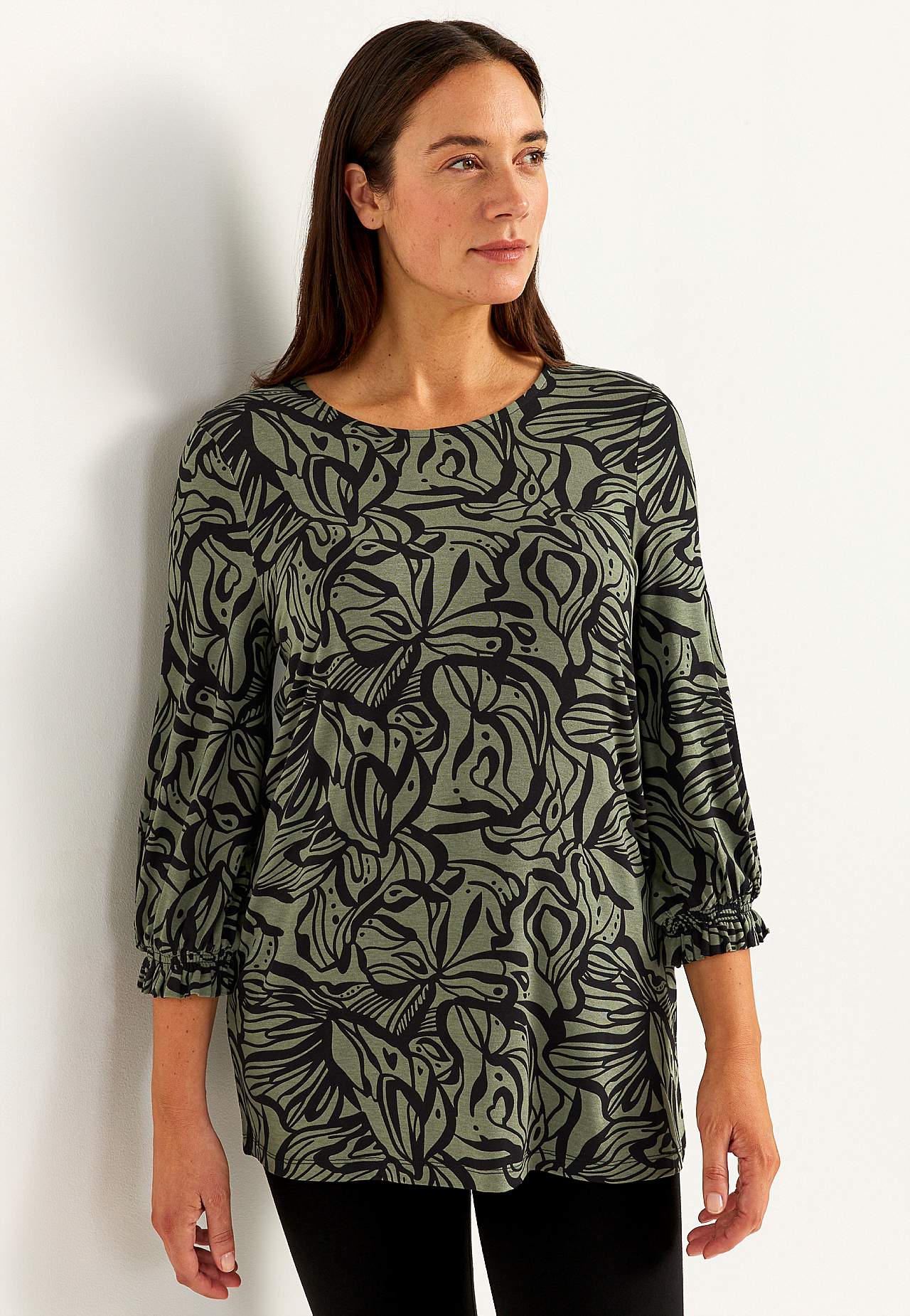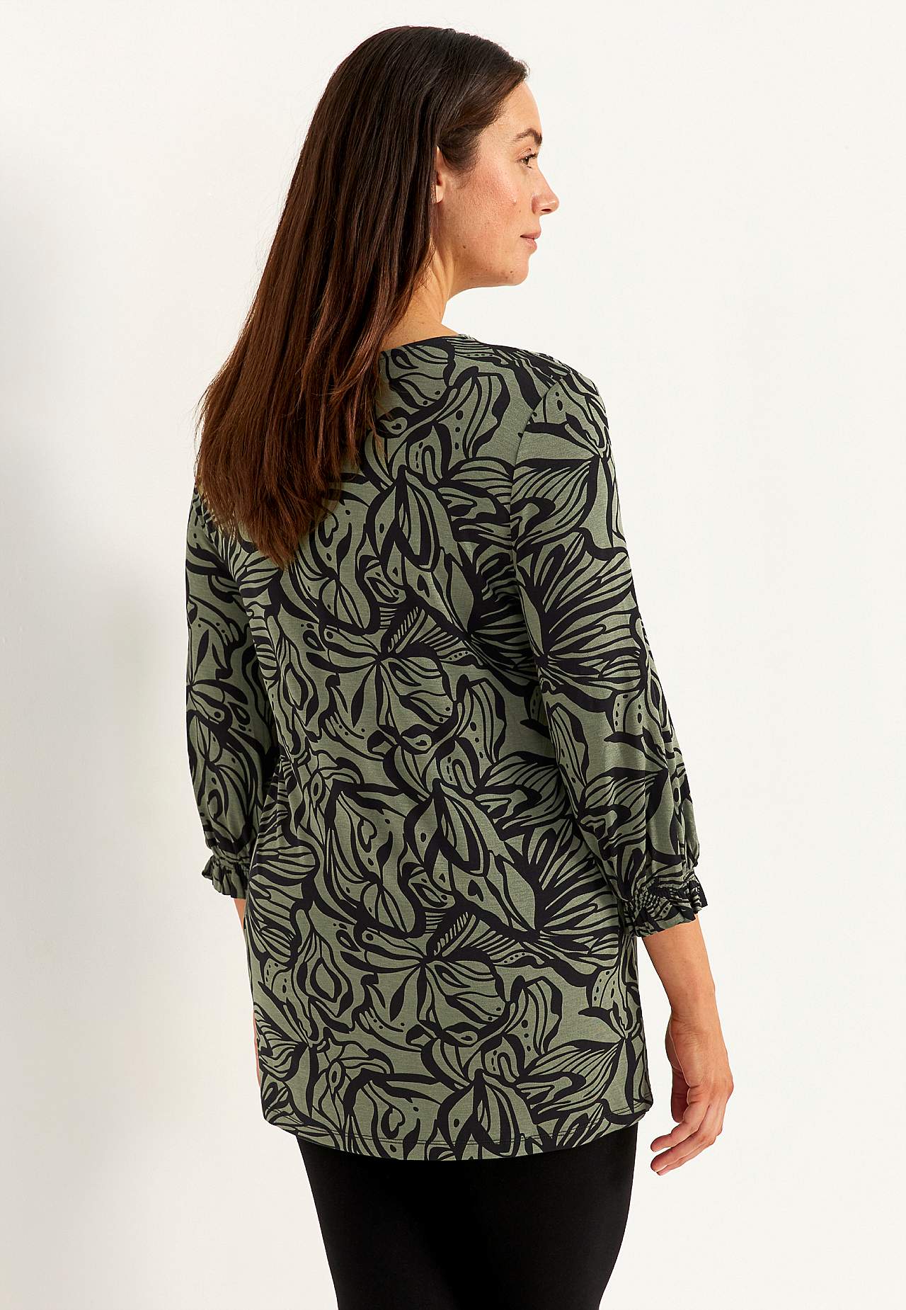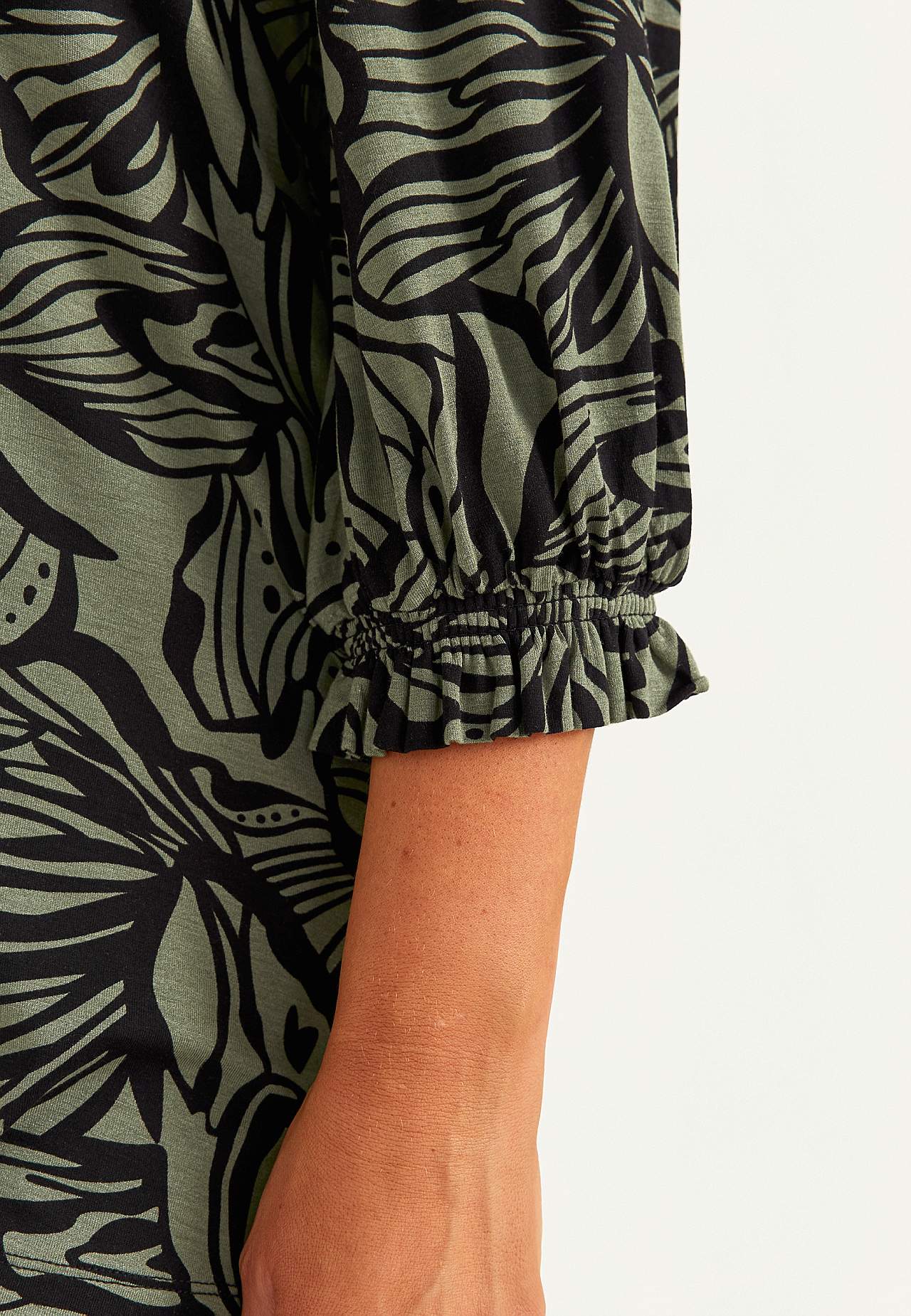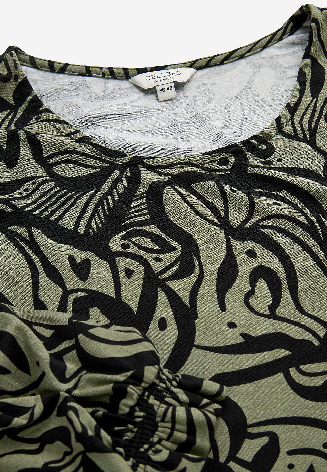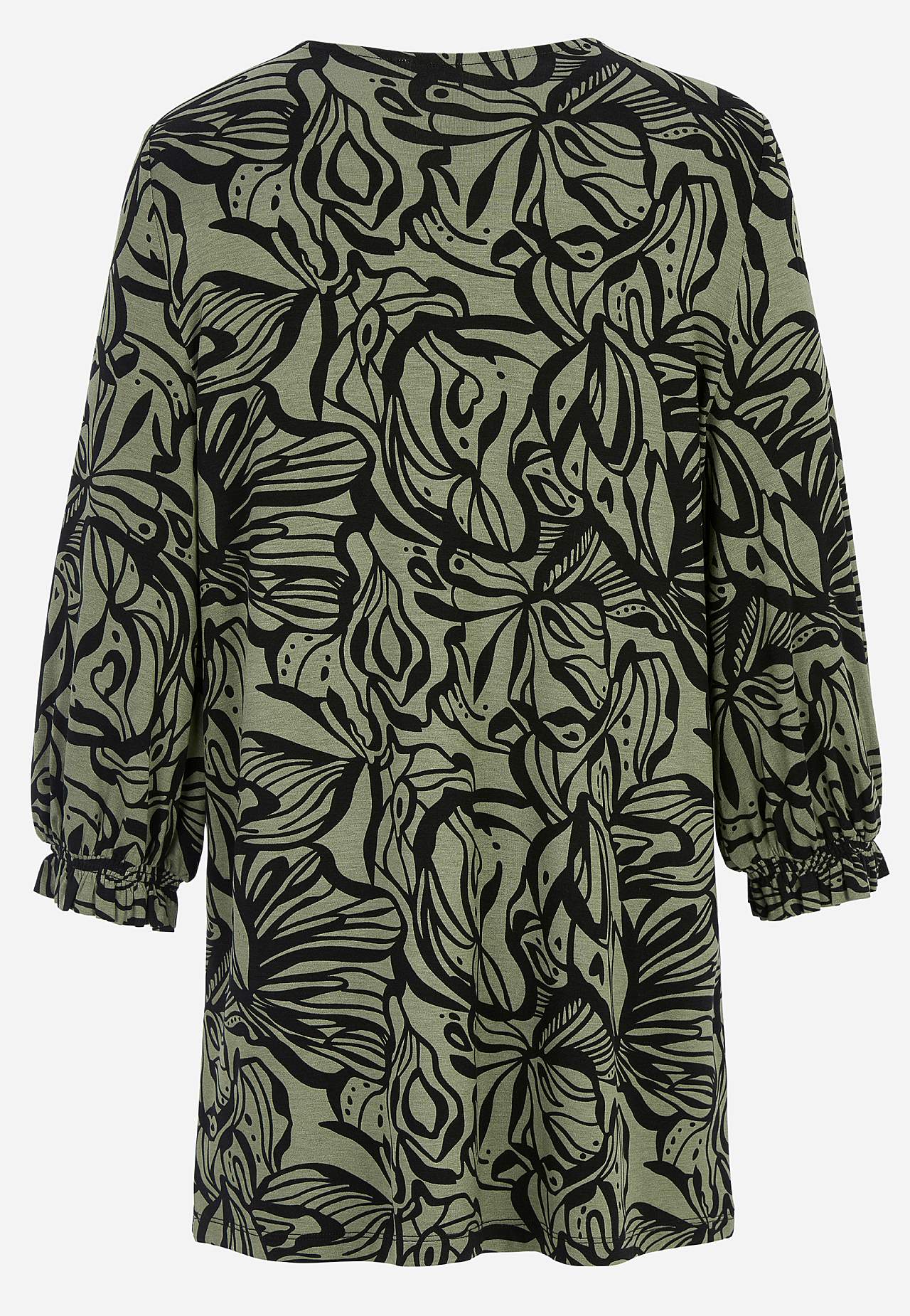 Kaunis, hästilangev materjal. Tavasuurus. Ümar kaelus. 3/4 pikkuses laiad varrukad, kätiste juures krooked. Pikkus õlast vastavalt suurusele u 73-80 cm.