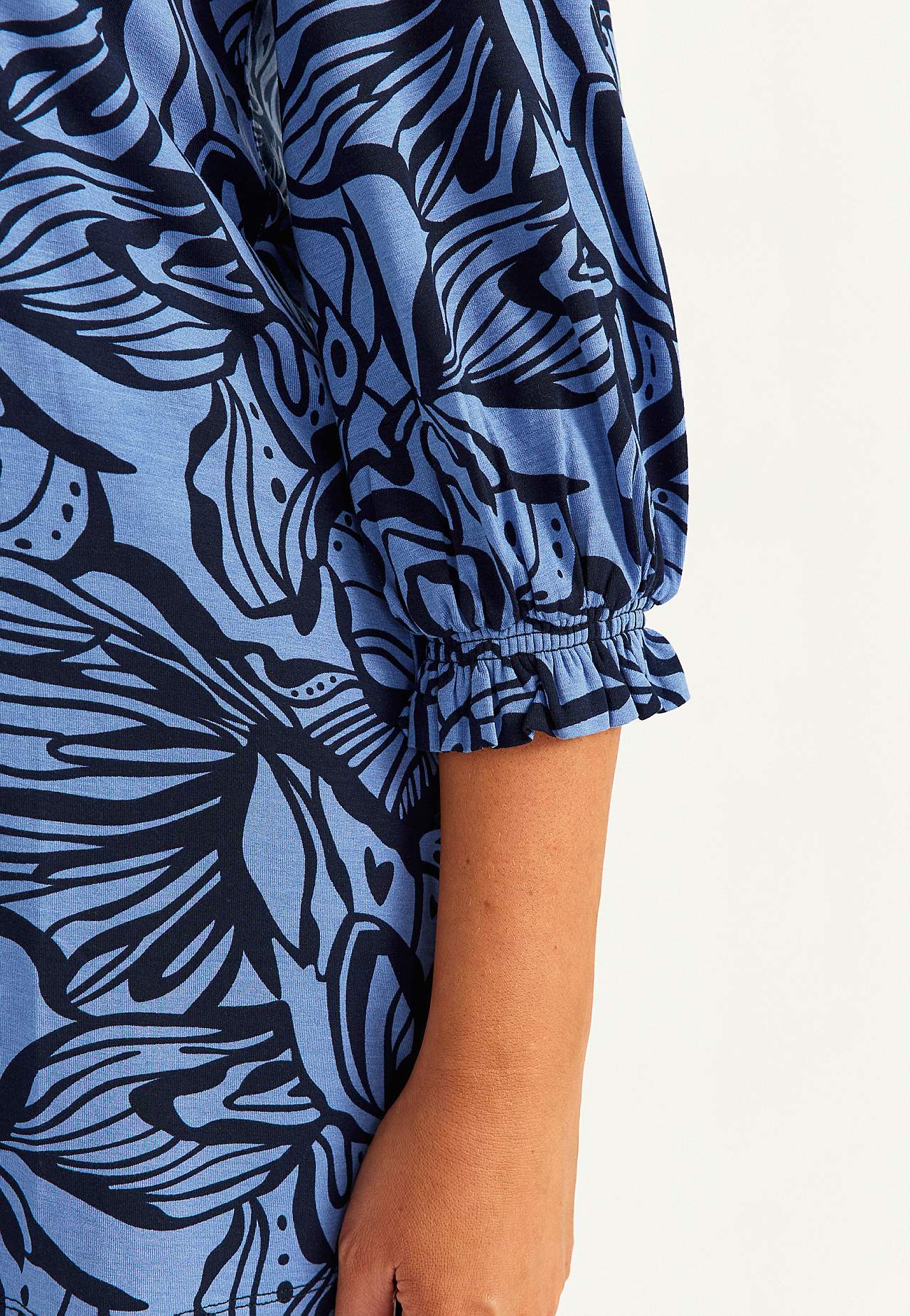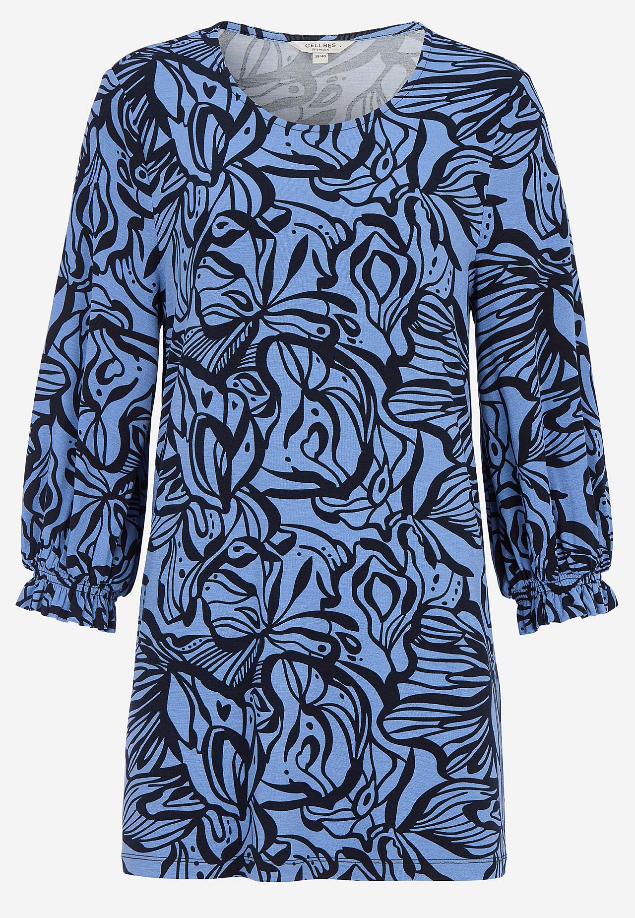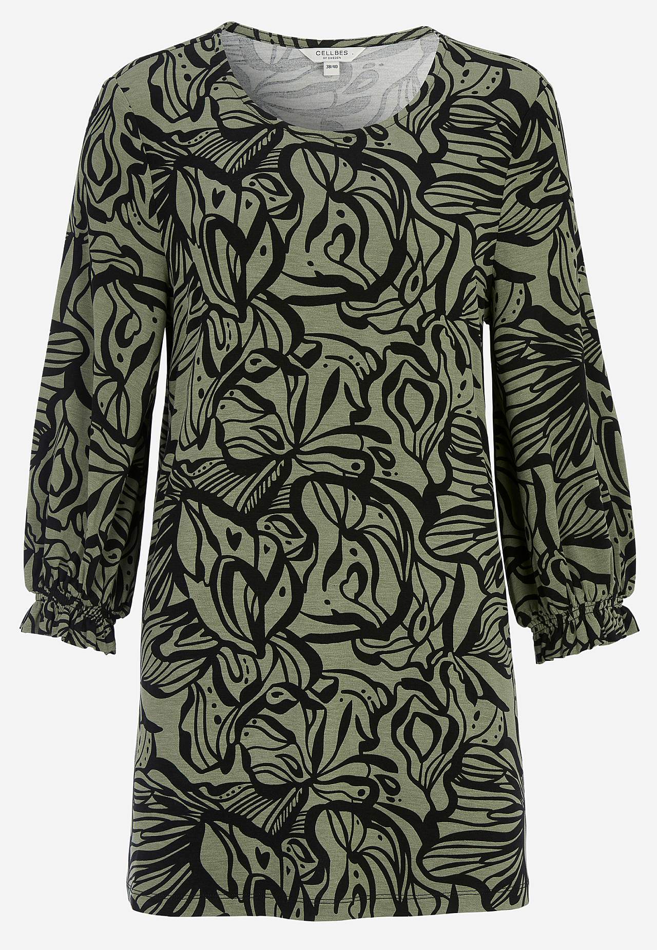 Kaunis, hästilangev materjal. Tavasuurus. Ümar kaelus. 3/4 pikkuses laiad varrukad, kätiste juures krooked. Pikkus õlast vastavalt suurusele u 73-80 cm.