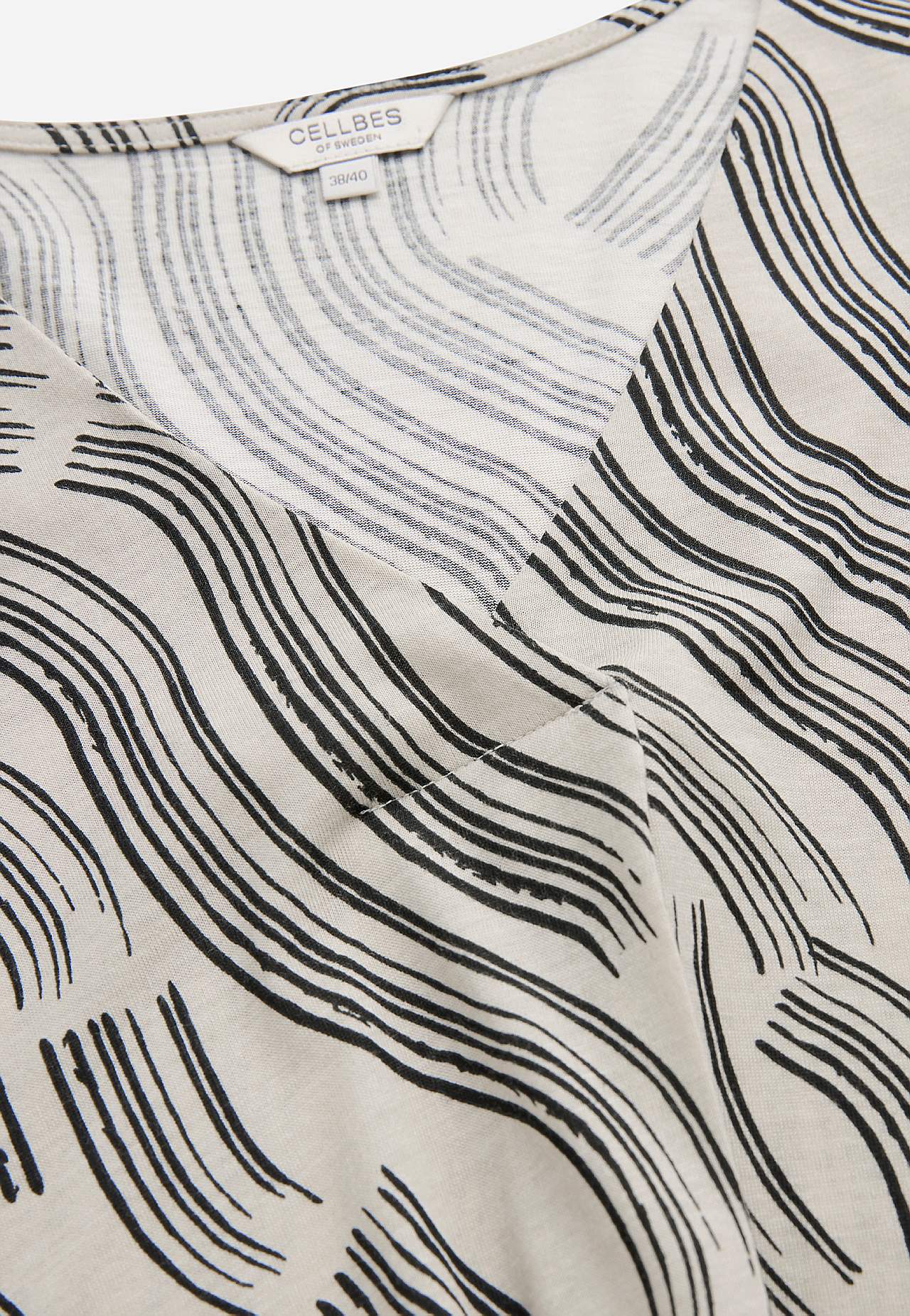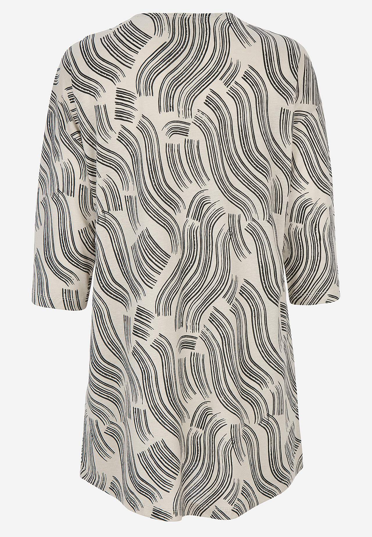 Pehme, kauni langevusega puuvilla- ja viskoosisegusest materjalist tuunika. Avar lõige. A-lõikeline. V-kaelus dekoratiivse voldiga. Pikendatud õlaosa. 3/4 pikkuses varrukad. Kaarjas alläär. Pikkus õlast vastavalt suurusele u 79-89 cm.