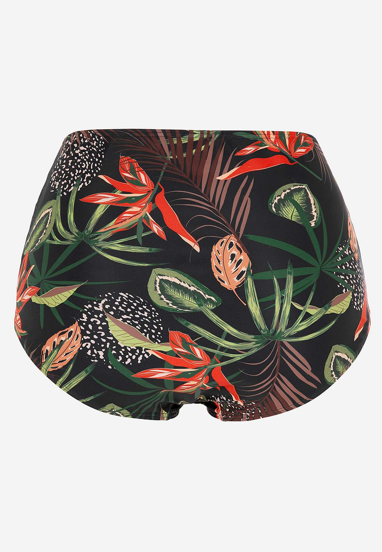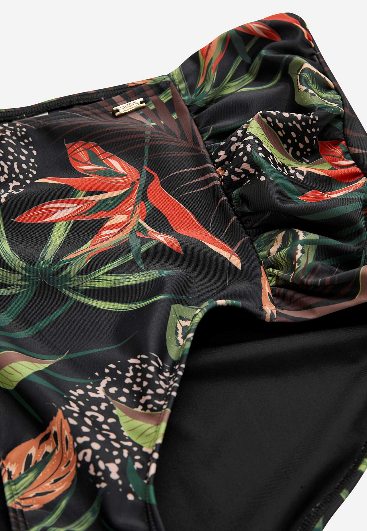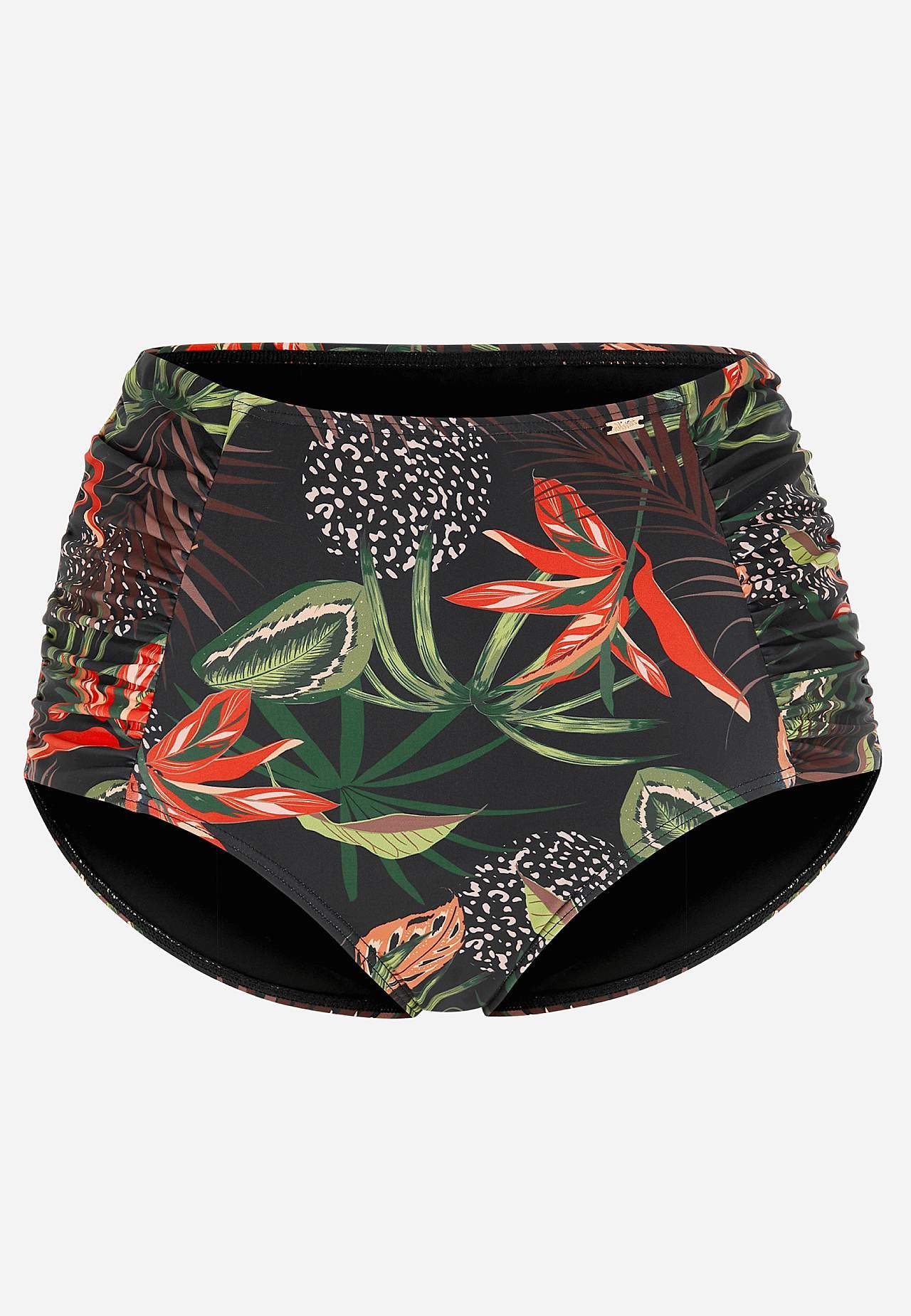 Ümbertöödeldud polüestrist bikiinipüksid. Kõrge värvel. Kaunis muster nii ees kui taga. Külgedel kena dekoratiivne drapeering. Täisvooder.