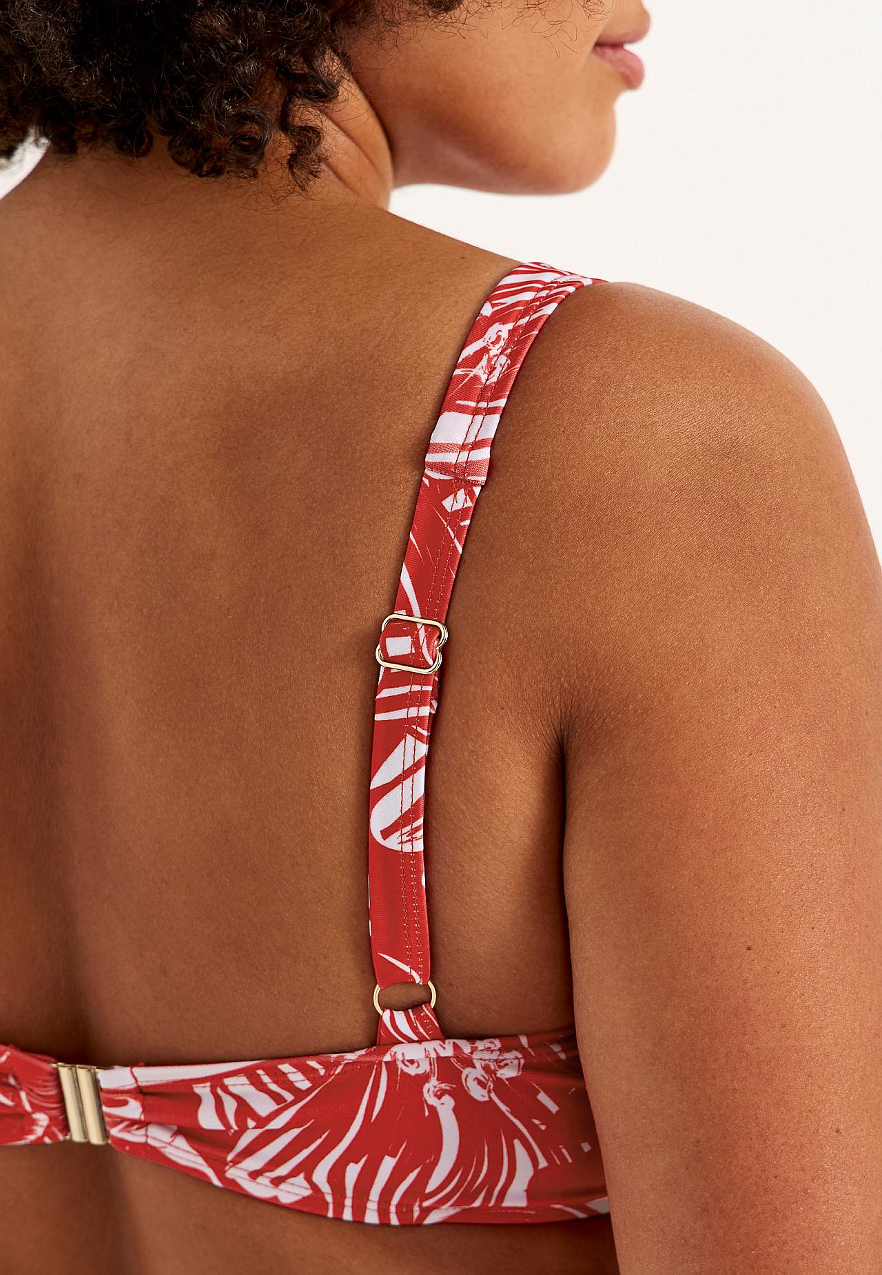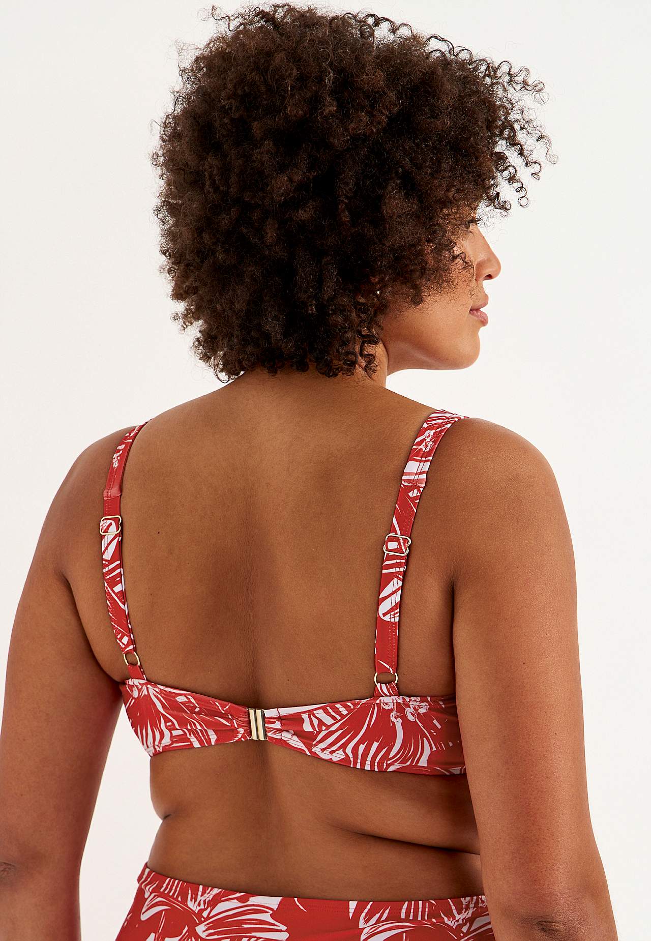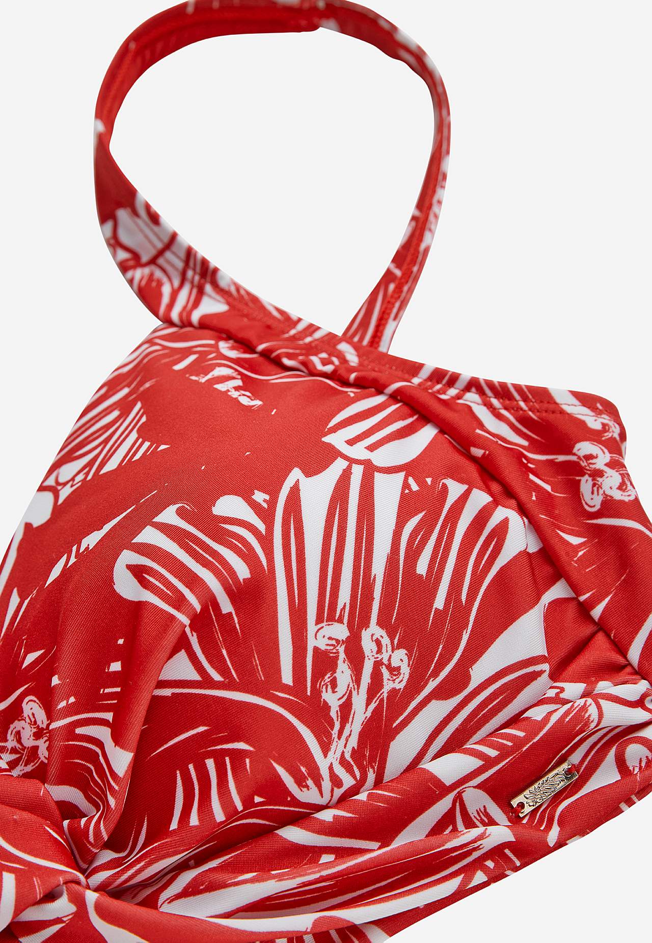 Pehme, tugikaarteta bikiinirinnahoidja, külgedel toestused. Taaskasutatud polüestrist. Lillemustriga mudel. Korvid eemaldatava polsterdusega. Reguleeritavad õlapaelad. Lihtsalt suletav metallkinnis taga.