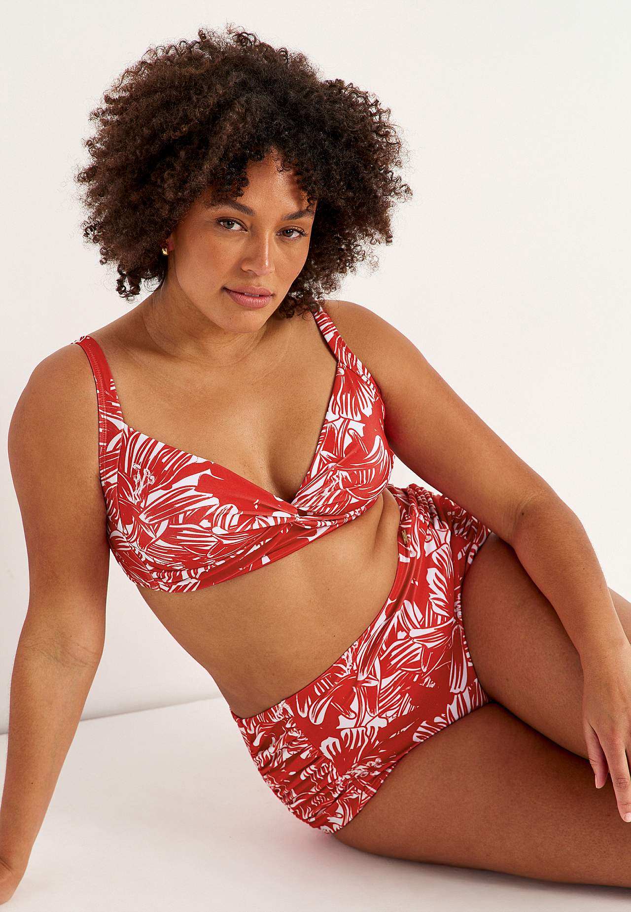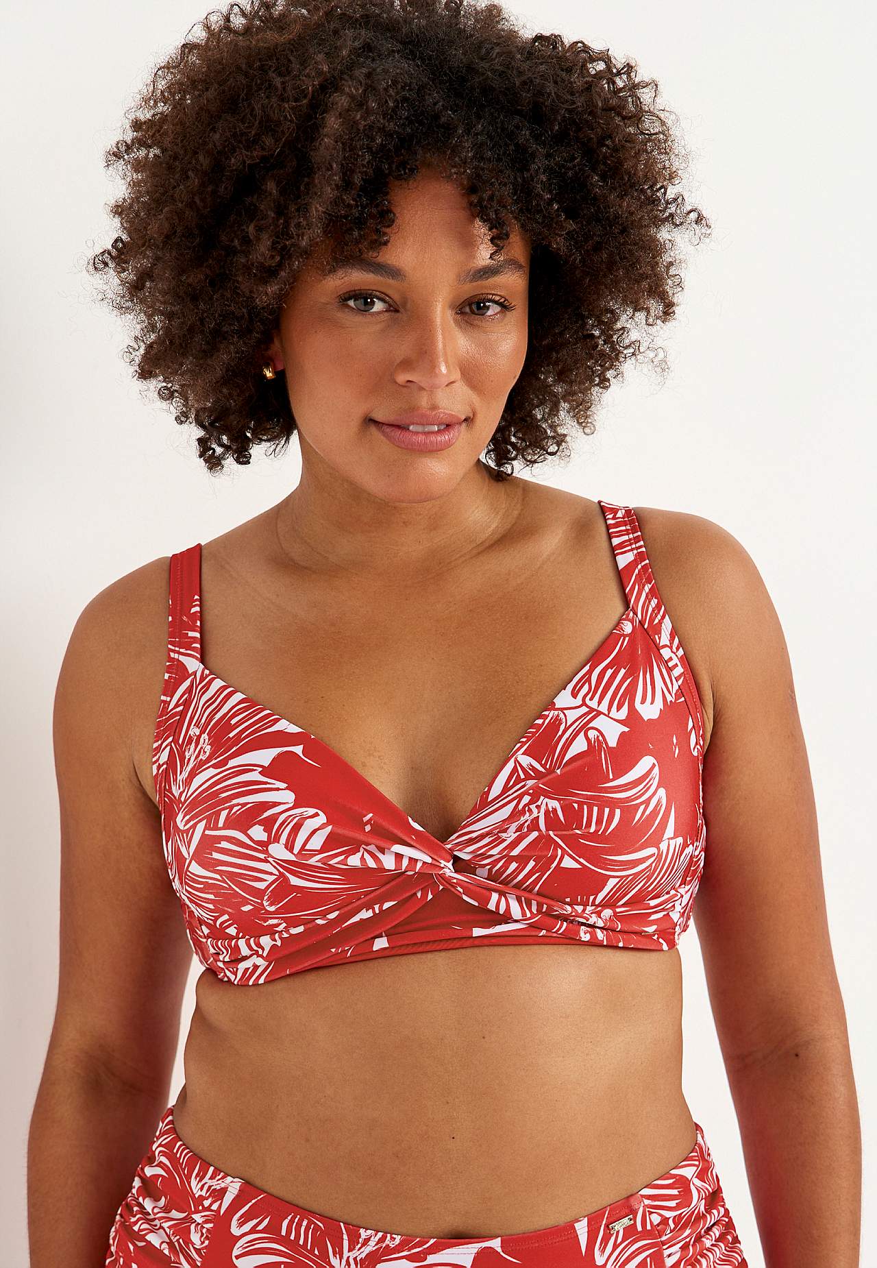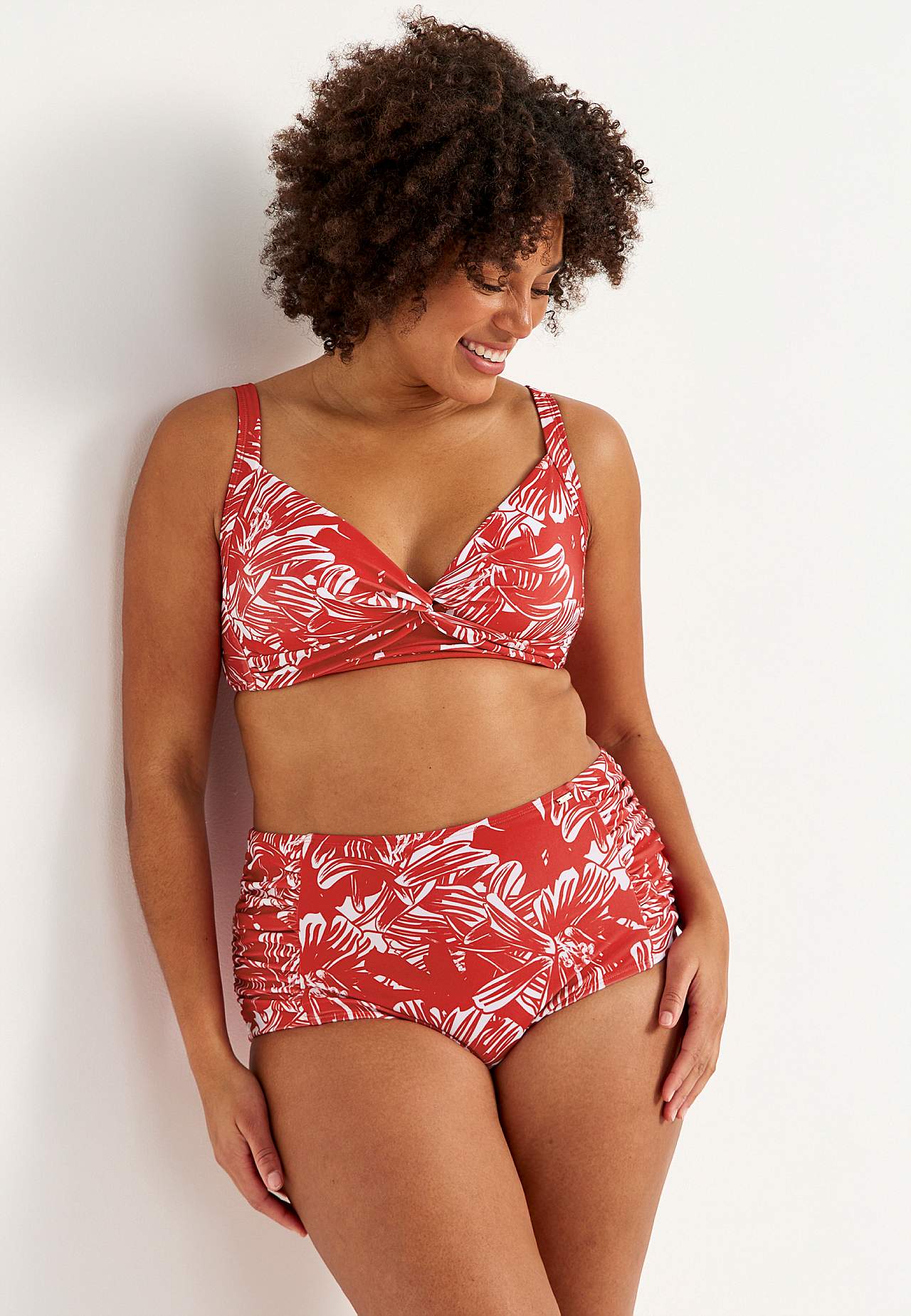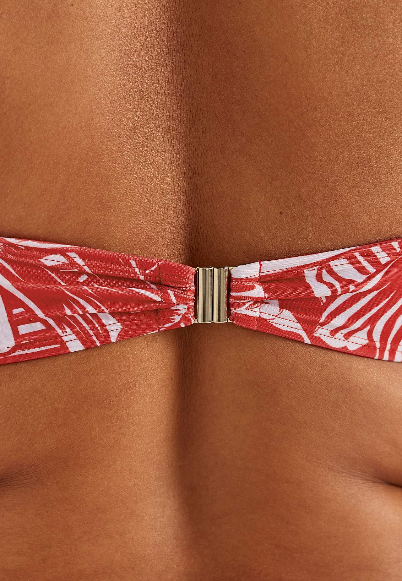 Pehme, tugikaarteta bikiinirinnahoidja, külgedel toestused. Taaskasutatud polüestrist. Lillemustriga mudel. Korvid eemaldatava polsterdusega. Reguleeritavad õlapaelad. Lihtsalt suletav metallkinnis taga.