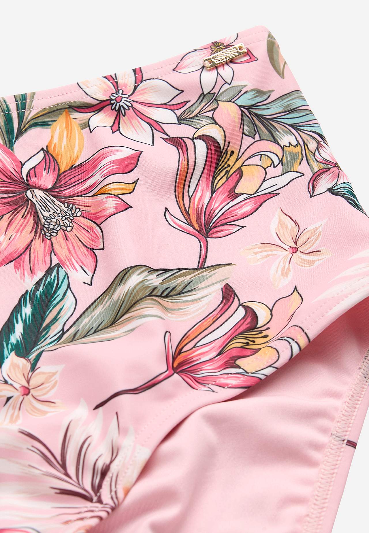 Lillelise mustriga ümbertöödeldud polüestrist bikiinipüksid. Kõrge pihaosaga elastne kummivärvel. Täisvooder.